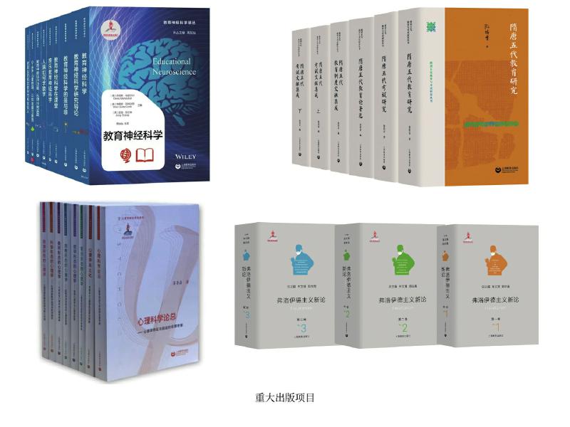 上教社密切關(guān)注新時代教育發(fā)展的重大理論問題與現(xiàn)實問題,響應(yīng)國家教育發(fā)展戰(zhàn)略需求,精心布局學(xué)術(shù)專業(yè)出版“大項目”,連續(xù)入選國家重點出版物出版規(guī)劃、2013—2025年國家辭書編纂出版規(guī)劃,獲國家出版基金資助。這其中除前文中的大型專科工具書,還包括一系列教育與心理學(xué)原創(chuàng)研究和前沿研究成果:由中國教育史學(xué)者孫培青編著的“隋唐五代教育與考試研究叢書”,構(gòu)建了反映隋唐五代教育與考試全貌的教育理論體系和文獻資料體系,是中國教育史學(xué)科建設(shè)的一項學(xué)術(shù)文化積累工程;《中國課程史》以現(xiàn)代課程理論為分析框架,以歷史線索展現(xiàn)中國學(xué)校課程的新陳代謝;“教育神經(jīng)科學(xué)譯叢”(9冊)是我國首個聚焦教育神經(jīng)科學(xué)這一國際教育研究前沿領(lǐng)域的學(xué)術(shù)譯介系列;《中國傳統(tǒng)德育心理學(xué)思想新論》系統(tǒng)挖掘整理中華優(yōu)秀傳統(tǒng)文化中蘊含的德育心理學(xué)思想,構(gòu)建中國特色心理學(xué)話語體系;我國第一套以大心理學(xué)觀,從本土心理學(xué)視角系統(tǒng)探索和解讀不同形態(tài)心理學(xué)的學(xué)術(shù)系列“心理學(xué)形態(tài)研究系列”(6冊),全景考察心理學(xué)的命運與前途,深入探索中國本土心理學(xué)的選擇與突破;《弗洛伊德主義新論》(三卷)匯聚國內(nèi)弗洛伊德主義研究領(lǐng)域的權(quán)威學(xué)者,歷史展現(xiàn)弗洛伊德理論的百年發(fā)展歷程,提供弗洛伊德主義研究的“全景圖”。這些重大出版項目為構(gòu)建中國特色自主知識體系,建設(shè)中國教育學(xué)和心理學(xué)學(xué)科體系、學(xué)術(shù)體系、話語體系發(fā)揮了重要作用。