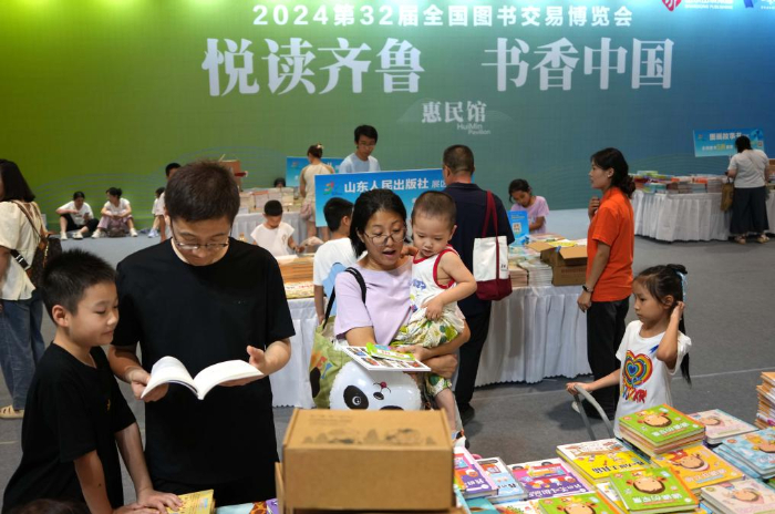 7月26日,讀者在第三十二屆全國(guó)圖書(shū)交易博覽會(huì)山東展區(qū)參觀。