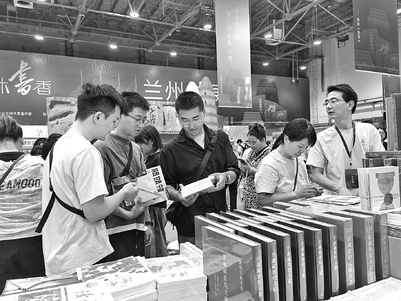 圖為8月22日,以“悅讀時(shí)代·共沐書香”為主題的2024蘭州書展開幕,讀者在展位前挑選喜歡的圖書。