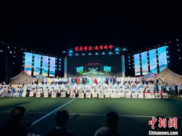 8月26日晚,詩(shī)意甘肅·絲路長(zhǎng)風(fēng)三千里—“書(shū)畫(huà)傳家·通渭詩(shī)會(huì)”在“中國(guó)書(shū)法之鄉(xiāng)”甘肅定西市通渭縣舉辦。閆姣 攝