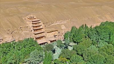 莫高窟坐落于河西走廊西部盡頭的甘肅敦煌,是世界文化遺產(chǎn),也是中華民族的文化藝術寶藏。圖為9月26日拍攝的莫高窟窟區(qū)。