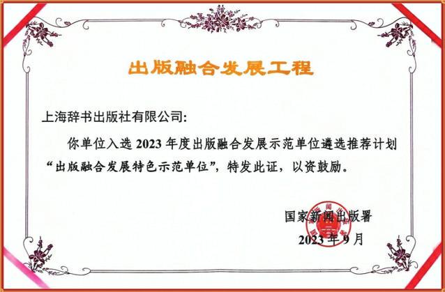 上海辭書(shū)出版社入選2023年度出版融合發(fā)展示范單位遴選推薦計(jì)劃“出版融合發(fā)展特色示范單位”