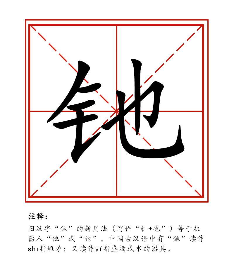 中國(guó)甘肅網(wǎng)1月23日訊 近日,范鵬教授通過(guò)朋友圈為舊漢字“釶”發(fā)明了一種新用法,寫(xiě)作“钅+也”,將其定義為等同于機(jī)器人的“他”或“她”。