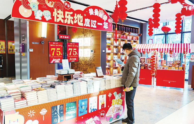 2月4日,讀者在甘肅省新華書(shū)店西北書(shū)城設(shè)置的“迎新悅讀啟航2025”炫春精品圖書(shū)聯(lián)展展臺(tái)前挑選自己喜歡的圖書(shū)。