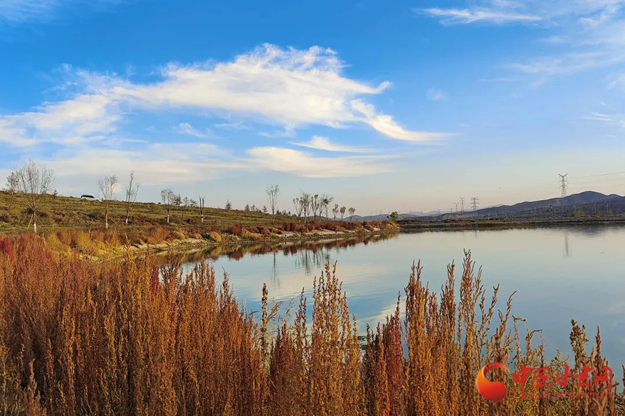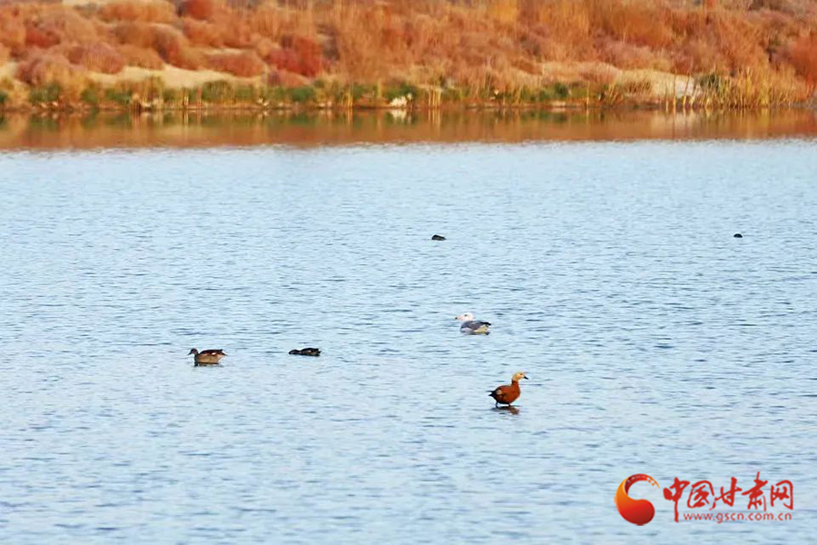 10月的蘭州新區(qū)水阜河,天氣微涼、秋色漸濃。成群的灰鶴、野鴨等野生鳥類棲息覓食、飛鳥嬉戲。每到傍晚,呈現(xiàn)出落霞與孤鶩齊飛,秋水共長天一色的美景。