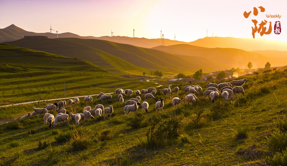 草原上的牛羊相互追逐,在落日余暉中變得格外溫馨,處處都是“風(fēng)吹草低見牛羊”的多彩景象。