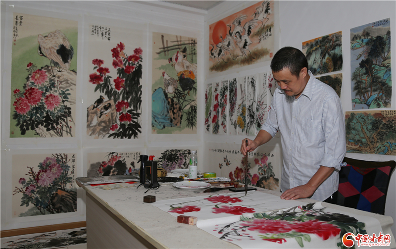 在悅心書畫長(zhǎng)廊里經(jīng)營(yíng)著一個(gè)書畫工作室的郜繼鳳告訴記者,自小他就喜歡畫畫,上學(xué)時(shí)學(xué)了美術(shù)專業(yè),如今,一邊在學(xué)校執(zhí)教美術(shù),一邊在工作室潛心畫畫。他說(shuō):“在濃厚的書畫氛圍下,女兒也喜歡畫畫,就好像基因里帶著一樣。”
