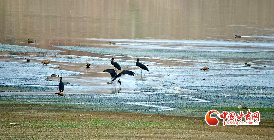 近日,山丹縣濕地保護站工作人員在開展候鳥監(jiān)測工作時發(fā)現14只被稱為“鳥中大熊貓”的黑鸛。