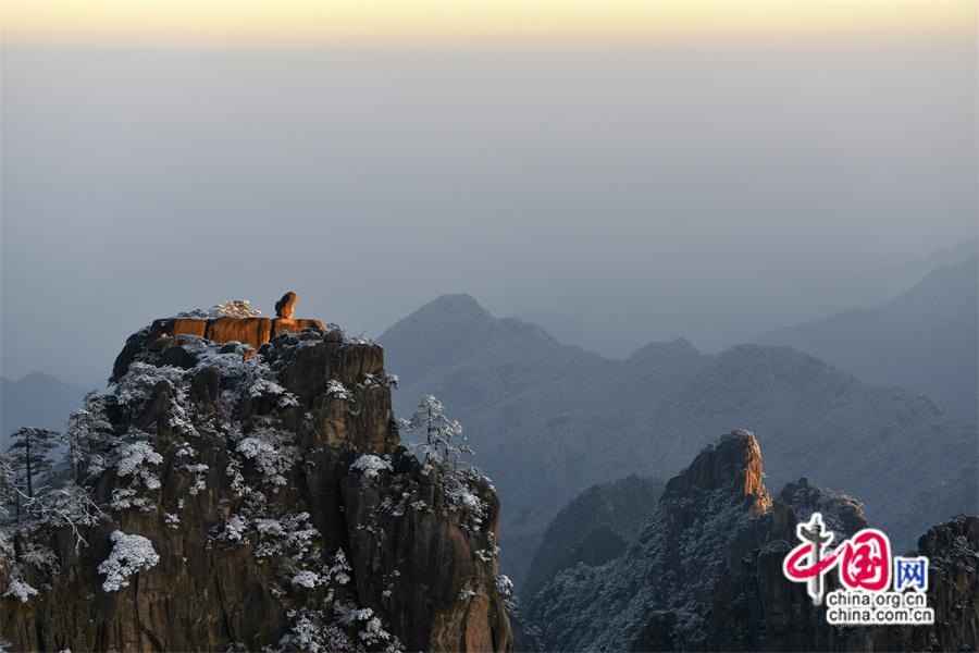 2024年1月2日夜,黃山下了新年的第一場(chǎng)初雪。1月3日早雪后的黃山銀裝素裹,在陽(yáng)光下晶瑩剔透。本組照片拍攝于獅子峰。獅子峰在黃山后山的北海景區(qū),這里群峰競(jìng)秀、巧石眾多,清涼臺(tái)、猴子觀海都這座山上,“不到獅子峰不見黃山蹤”是北海的風(fēng)景窗。
