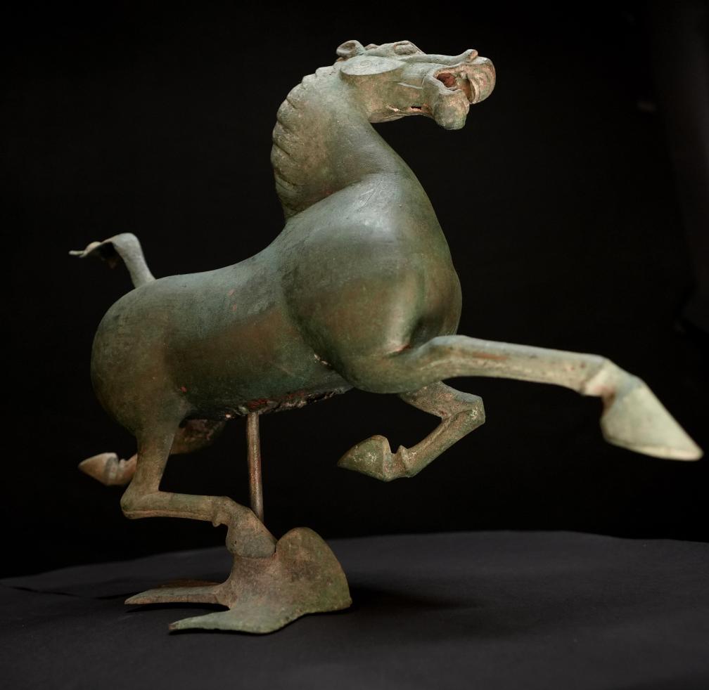 “銅奔馬設(shè)計(jì)思路超前,鑄造工藝考究,反映了漢代高超的科技水平,具有極高的考古研究價(jià)值。”甘肅省博物館副館長、研究員王琦說。