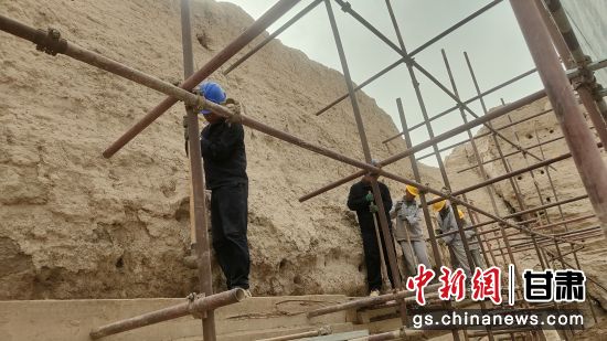“主要保護措施有夯筑支頂加固、裂隙注漿、風(fēng)蝕凹槽加固等,現(xiàn)已完成總工程的90%,計劃11月中旬全面完工。”敦煌研究院文物保護技術(shù)服務(wù)中心鎖陽城遺址內(nèi)城東墻保護修繕工程修復(fù)技師張鑫說。