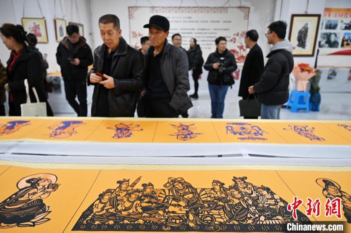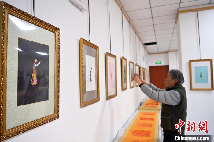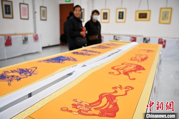 11月19日,“蘭州剪紙”非遺傳承人李自新、李麟桐剪紙藝術(shù)展在甘肅省蘭州市開幕,展出以敦煌壁畫、隴上風物等為題材,精心創(chuàng)作的剪紙作品。圖為展出的剪紙作品。中新社記者 九美旦增 攝
