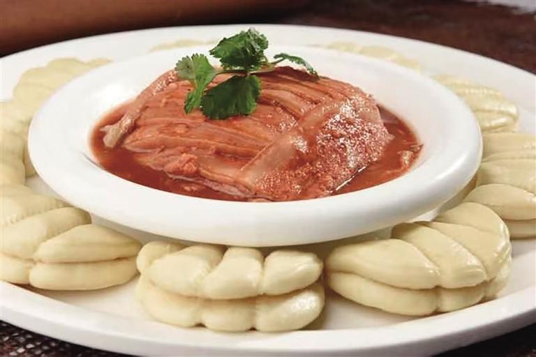 “黃河大鯉魚、蘭州糟肉、麻辣肉、老蘭州燴菜這些都是隴菜中的必點菜式!”董巖向記者介紹了店里的招牌菜:黃河宏豐鯉魚王,魚肉質(zhì)鮮嫩細膩、營養(yǎng)豐富,在隴菜傳統(tǒng)烹飪技法中,紅燒黃河鯉魚堪稱經(jīng)典做法,搭配廚師精致的排盤,色澤紅亮的魚身與青蔥翠綠相互映襯,香氣撲鼻,令人垂涎欲滴。蘭州糟肉在隴菜中是一道極具特色的傳統(tǒng)名菜,每逢佳節(jié),它更是成為蘭州人家餐桌上必不可少的一道佳肴,承載著濃濃的節(jié)日氛圍和家的味道。精選肥瘦相間的五花肉,經(jīng)過刀工、糟鹵腌制、放入蒸鍋中蒸熟等一系列操作,肉質(zhì)變得軟爛,肥而不膩,糟香四溢。當(dāng)入口品嘗時,那濃郁的糟香味瞬間在口中散開,與五花肉的醇厚口感完美搭配,相得益彰,讓人回味無窮。