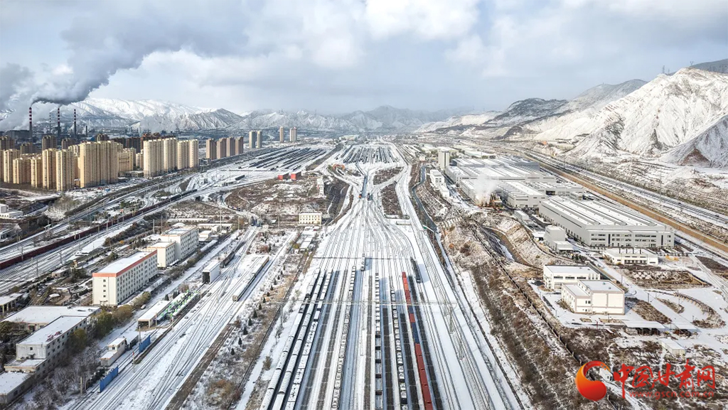 鐵道線宛如銀色的綢帶穿城而過,將城市的喧囂與遠(yuǎn)方的寧靜巧妙地連接在一起。一列列火車整齊地排列在鐵軌上,宛如一條條“鋼鐵巨龍”,靜靜地蟄伏,等待著喚醒它們的汽笛??焓詹剡@屬于冬日鐵路的專屬浪漫!