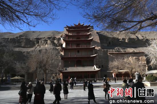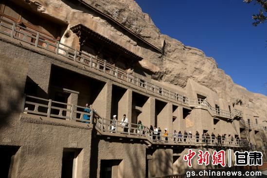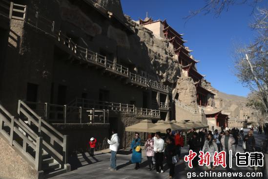 初冬時節(jié),游客走進世界文化遺產(chǎn)甘肅敦煌莫高窟欣賞燦爛的石窟藝術(shù),品味悠久的敦煌歷史文化。