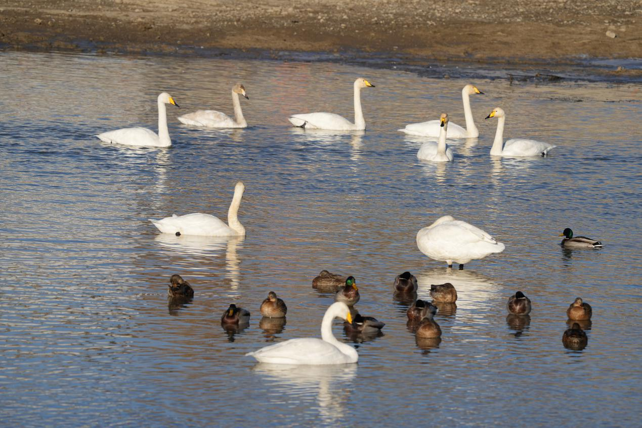 大天鵝正成為額敏冬季旅游的“新名片”,更是引客入額的吉祥鳥(niǎo)。(朱芹 那娥木汗)