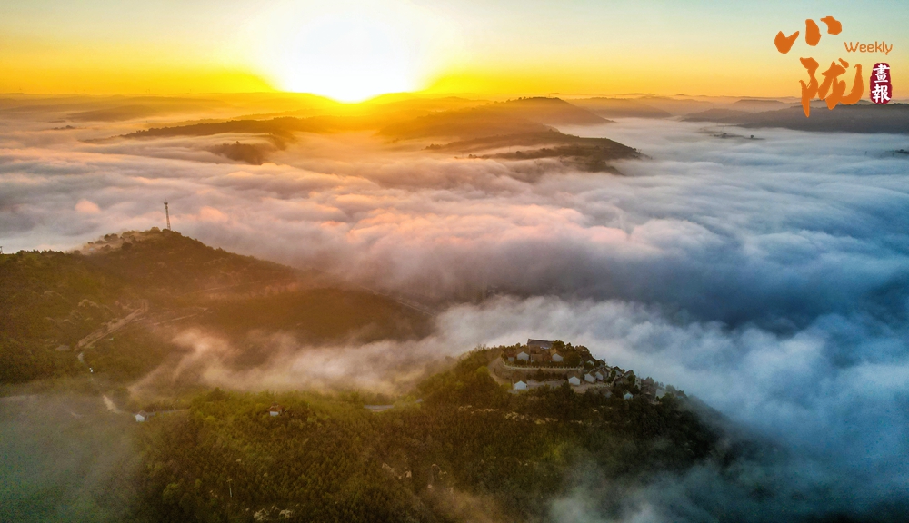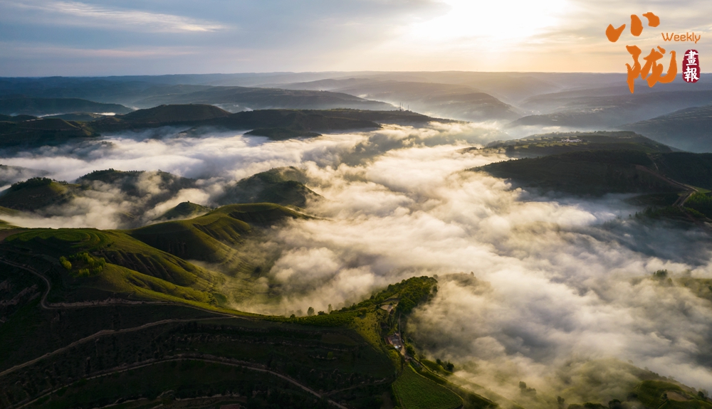 連綿起伏的山巒在云霧中若隱若現(xiàn),霧氣彌漫將溝峁山梁籠罩,形成一幅水墨風光畫。