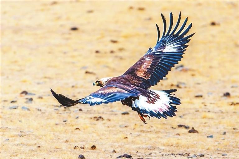 金雕以其卓越的捕獵技巧和優(yōu)雅的飛行姿態(tài)而聞名,主要棲息于高山草原、森林及河谷地帶。在祁連山遼闊的草原之上,金雕展開它那寬闊且有力的雙翅,在藍(lán)天之中肆意翱翔。陽(yáng)光傾灑下來(lái),深褐色的羽毛閃爍著如同金屬般耀眼的光澤,猶如披上了一件堅(jiān)不可摧的鎧甲,威風(fēng)凜凜。它那犀利的眼神,仿佛能夠穿透重重迷霧,洞察這片廣袤土地上的每一個(gè)細(xì)微變化,盡顯王者風(fēng)范。它身姿雄偉而威嚴(yán),宛如一位至高無(wú)上的王者,向整個(gè)世界展示著它那不容小覷的力量與威嚴(yán),默默地守護(hù)著這片廣袤無(wú)垠的草原天地。