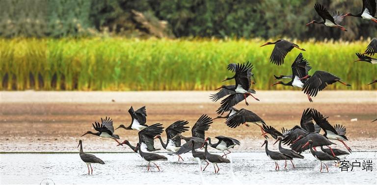 黑河濕地的黑鸛。