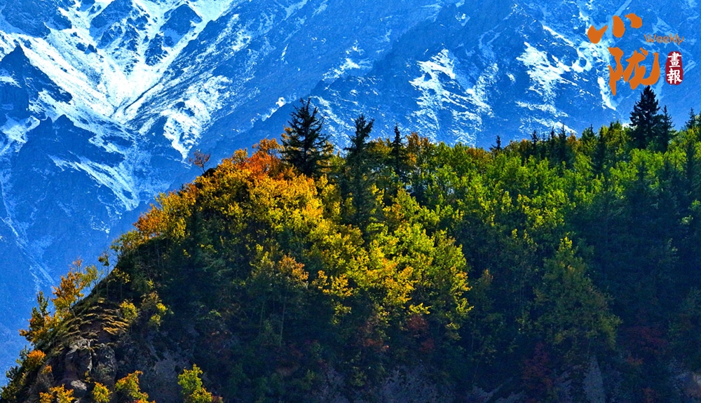 秋風(fēng)吹過,祁連山的原始森林悄然換裝。黃綠交織,紅金點(diǎn)染,仿佛大自然執(zhí)筆揮灑的油畫,靜謐而熱烈。尤其是在陽(yáng)光的照耀下,與遠(yuǎn)處的雪山和湛藍(lán)的天空、潔白的云朵,形成鮮明的對(duì)比。