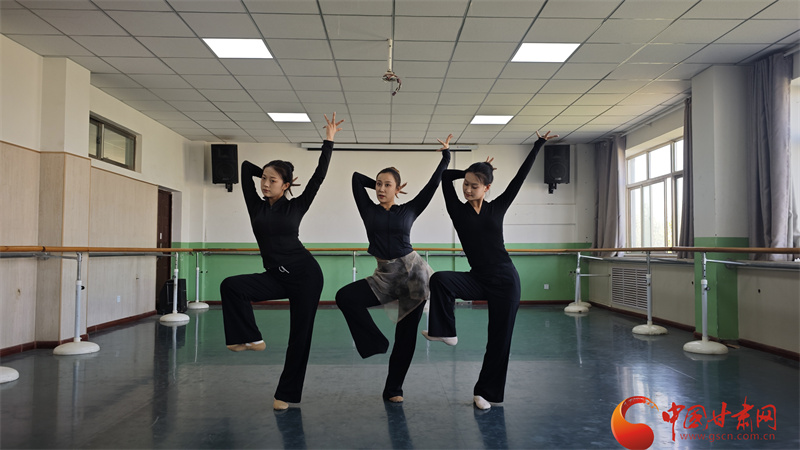 “敦煌舞最難的是對重心的把握,三道彎的舞姿造型對平衡要求很高。”蘇瑞璇介紹敦煌舞練習的要理,而除此之外,她一直都給同學們灌輸與壁畫舞者對話的理念,只有心中有敦煌、有壁畫,才能跳出敦煌舞的神韻。