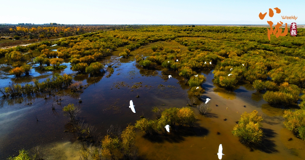 每到冬季,濕地的胡楊換上金黃盛裝,與穿梭其間的湖水、溫暖柔和的蘆葦蕩,繪制成一幅水墨長(zhǎng)卷,將初冬的浪漫鋪滿(mǎn)天地。