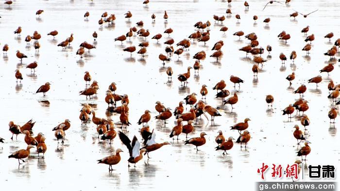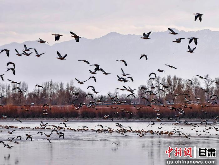 在黑河濕地國家級自然保護區(qū)高臺段,蜿蜒的河道與開闊的水面已成為候鳥的臨時家園。