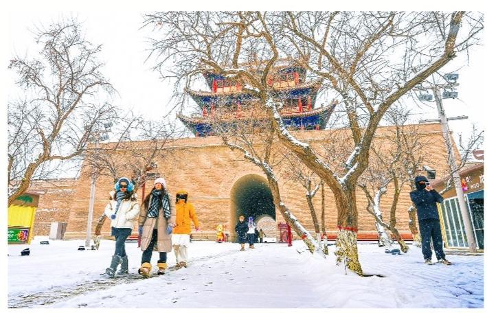 中國甘肅網12月22日訊 據嘉峪關日報報道(融媒體中心記者 李巍 攝)12月19日,漫天飛雪靜落雄關,把巍峨邊關裝扮出水墨意韻,在壯美之余,更是增添了溫婉靜謐之美,吸引游客探訪體驗。