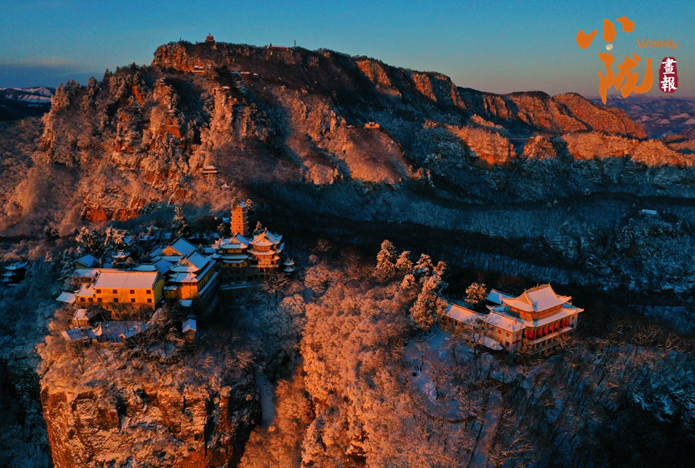 雪,為“西來第一山”披上了一襲亙古的素衣。舉目望去,朱紅的宮墻、青黑的瓦當,在白雪的映襯下,色彩格外鮮明莊重。