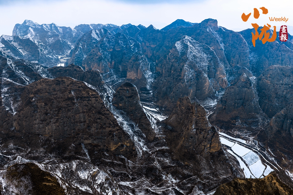 雪落在陡峭的崖壁上,落在圓潤的山頂上,落在深邃的溝壑里。紅的更紅,白的更白,仿佛是大地披上了婚紗,要在春天里完成一場盛大的婚禮。