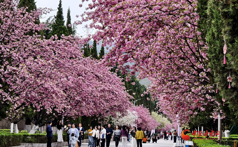 4月10日,在金徽酒文化生態(tài)旅游景區(qū)櫻花大道,游客踏春賞花,樂享春光。